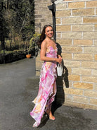 هذا الفستان الزهري يتميز بتصميم عصري مع كشكشات رقيقة. قصته تُبرز القوام. مثالي للمناسبات الخاصة، يوفر مظهراً أنيقاً.