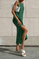 يجذب هذا الفستان الطويل بأسلوبه البسيط وسقوطه السلس الذي يبرز القوام بشكل طبيعي. قصته النظيفة والشقوق الجانبية الخفية تجعله قطعة مثالية لدمج الراحة والرفاهية. خفيف ومريح للارتداء، يتناسب مع الأيام المشمسة وكذلك لحظات الاسترخاء في العطلات.