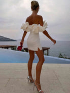 אלורה | שמלת אלגנטית עם רפפות – כתפיים חשופות וגזרה נשית