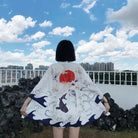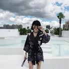 הג'קט קימונו לנשים מעוטר בדוגמה מעודנת המייצגת ציפורים יפניות, סמל להרמוניה וחן. הגזרה הרחבה והזורמת שלו מבטיחה נוחות מושלמת, בין אם למראה יומיומי ובין אם לתלבושת יותר אלגנטית.
