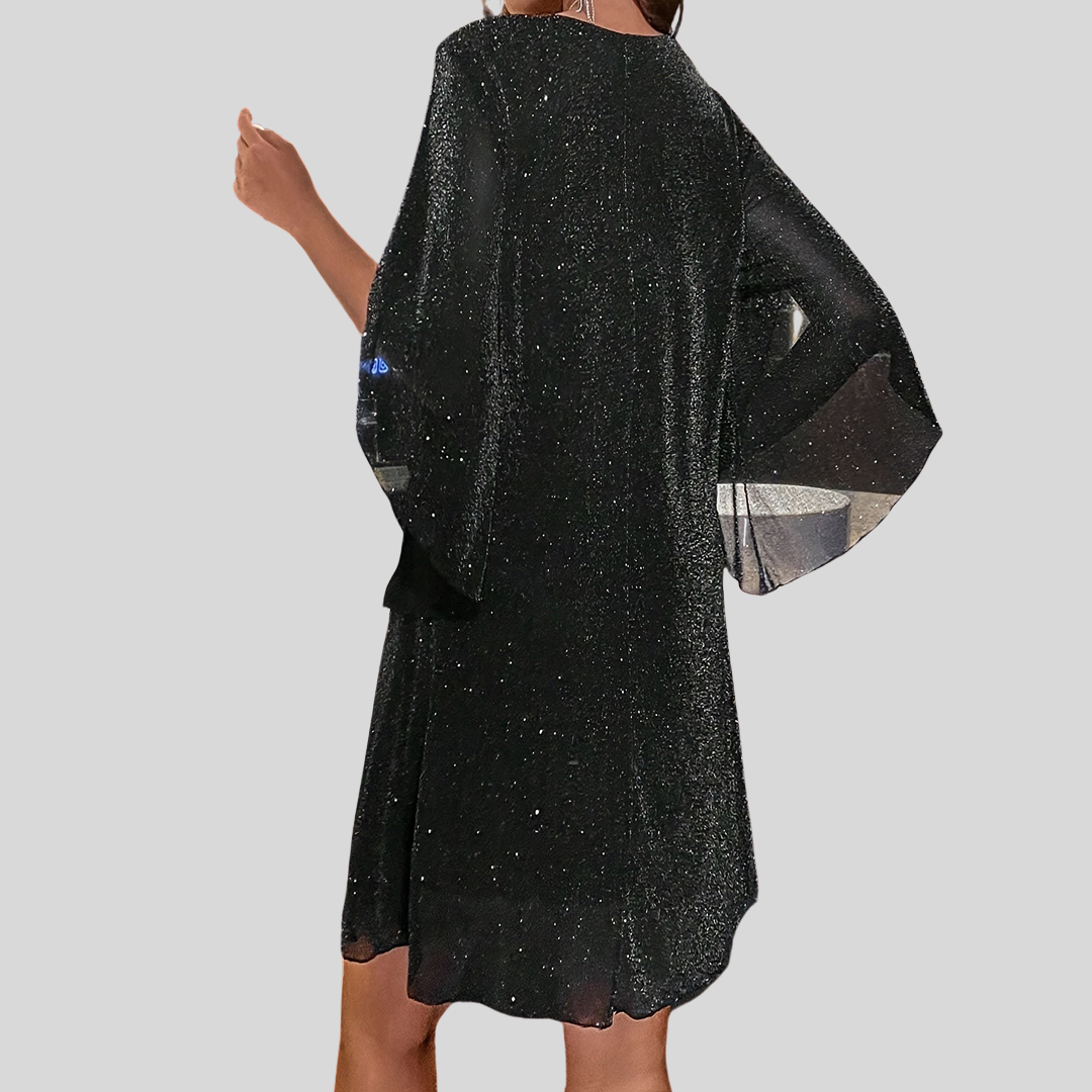 Rania | Luksuriøs Kjole med V-Udskæring og Lange Ærmer