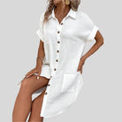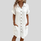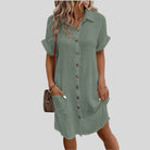 Denne knap-ned skjortekjole tilbyder en rummelig og komfortabel pasform. Fås i flere farver, den tilpasser sig til alle anledninger. Dens tidløse design gør den til et must-have i din garderobe.