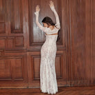 Ninon | Lange Spitze Kleid mit Kordelzug und Schal