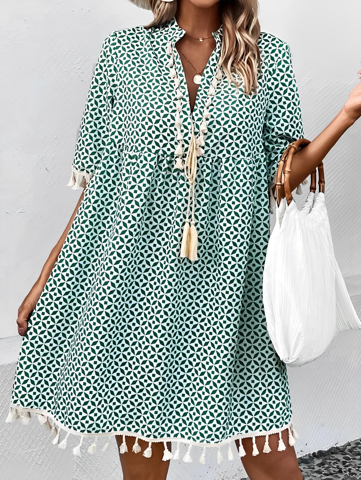 Αυτό το καλοκαιρινό φόρεμα διαθέτει μοντέρνο σχέδιο και άνετη γραμμή. Τα κοντά μανίκια και η ελαφρότητά του το καθιστούν ιδανική επιλογή για ηλιόλουστες μέρες. Τέλειο για την πόλη, τις διακοπές ή μια έξοδο με φίλους.
