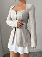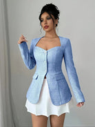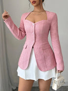 This buttoned jacket highlights the silhouette with its fitted cut and modern square neckline. Perfect for an elegant and feminine look, it can be worn both at the office and for outings. Its neat design and delicate buttons add a touch of timeless refinement to your outfit.