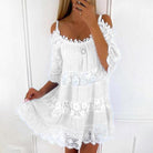 Este vestido corto bohemio seduce por su corte fluido y sus hombros descubiertos que resaltan la silueta con elegancia. Sus delicados acabados añaden un toque romántico, ideal para los días de verano o paseos junto al mar.