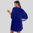 Este vestido corto brillante es ideal para sus noches. Su escote en V realza su silueta. Disponible en varios colores y tallas.