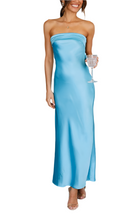 Este vestido largo de satén sin tirantes dibuja una silueta elegante y femenina. Fluido y ligero, es ideal para las noches de verano, bodas o ocasiones especiales. Su caída sedosa aporta un toque de refinamiento mientras asegura un confort óptimo. Disponible en varios colores para adaptarse a todos los estilos.