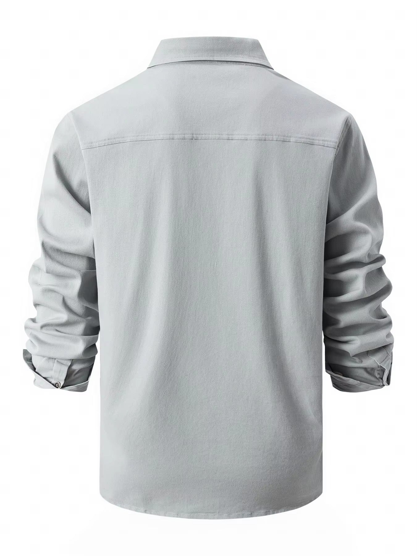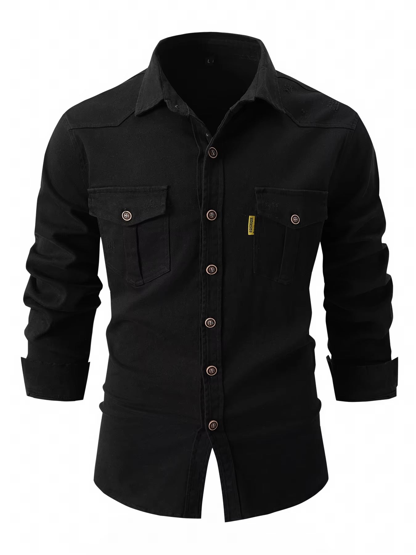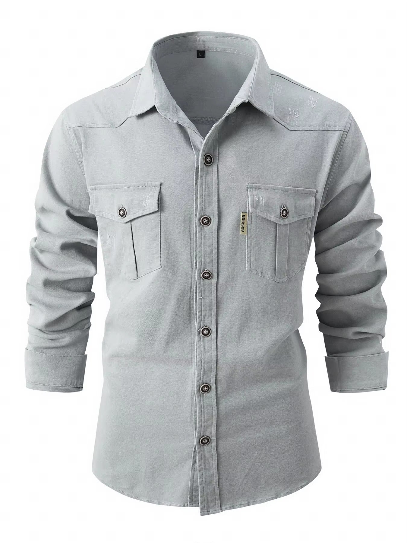 Tämä pitkähihaista paitaa on suunniteltu kontrastivärisestä denimestä. Siinä on klassinen käännettävä kaulus ja keskellä nappilista, joka tarjoaa sekä rakenteellista että rentoa tyyliä. Rintataskut lisäävät toiminnallisuutta. Sen siisti leikkaus sopii monenlaisiin tilaisuuksiin, arjesta juhlavampiin tapahtumiin.