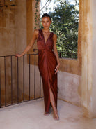 Tämä halkioilta-asu korostaa siluettia elegantin halkionsa ja kevyen leikkauksensa ansiosta. Suunniteltu suuria tilaisuuksia varten, se yhdistää hienostuneen tyylin ja liikkumisen vapauden. Sen ajaton muotoilu takaa tyylikkään ilmeen kaikissa tilanteissa.