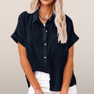 Tämä pusero tarjoaa tilavan leikkauksen, joka on ihanteellinen kuumille päiville. Sen klassinen kaulus ja nappikiinnitys lisäävät eleganttia ilmettä. Täydellinen rentoon tai ammattimaiseen tyyliin.
