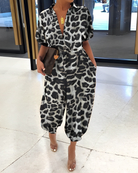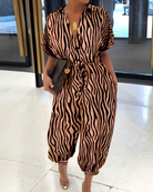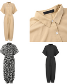 Cette combinaison ceinturée offre un style moderne et une coupe confortable. Son design boutonné et ses jambes resserrées apportent une touche tendance, idéale pour vos sorties ou journées décontractées.