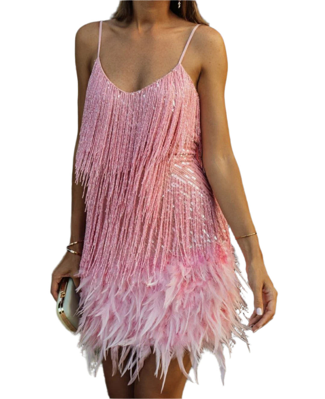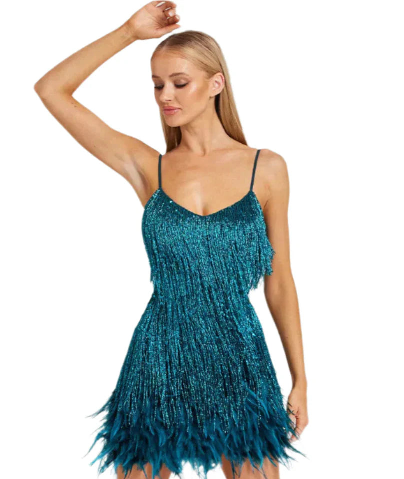 Clarisse | Robe Mini Glamour Avec Franges Et Plumes