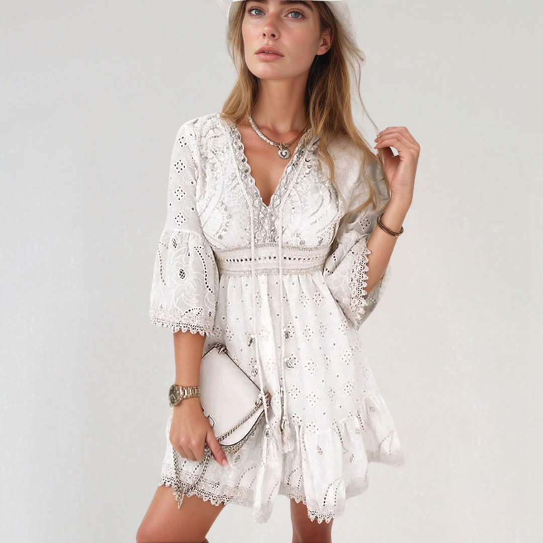 Ghislaine | Rövid Bohém Ruha – Finom Hímzések és Gallér V