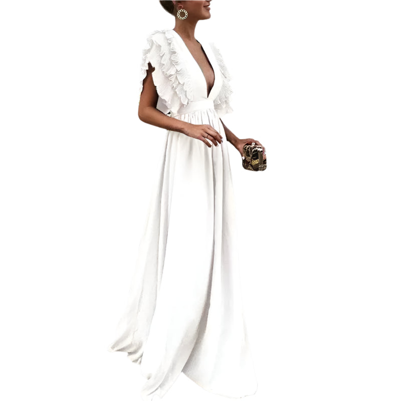 Louise | Hosszú Elegáns Ruha Fodrokkal és Mélyen Decolletéval