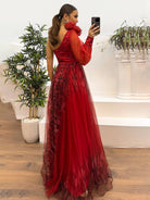 このロングドレスはユニークな花柄を持っています。一方の肩のデザインとサイドスリットが優雅さを加えています。