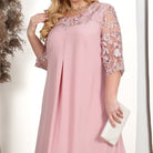 エレガントな刺繍が施されたドレスで、繊細な花の刺繍が飾られています。この軽やかなドレスは、クラシックなラウンドネックとミドル丈の袖で魅力を引き立てます。特別な occasion や洗練された夜にぴったりのエレガントな印象を与えます。