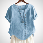 このブラウスは、あなたの夏の日々にエleganceと快適さを兼ね備えています。職人の手によるデザインは、卓越した品質と細部へのこだわりを保証します。複数の色で利用可能で、あらゆるスタイルに適応します。
