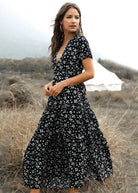 この黒のロングドレスはボヘミアンシックなスタイルを体現しています。深いVネックがシルエットを引き立てます。流れるような生地で作られており、最適な快適さを提供します。