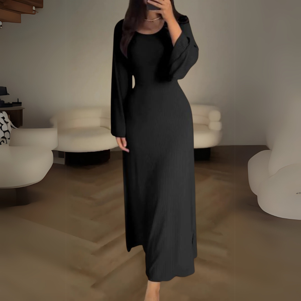 ルナ | エレガントなロングドレス – 長袖と洗練されたカット