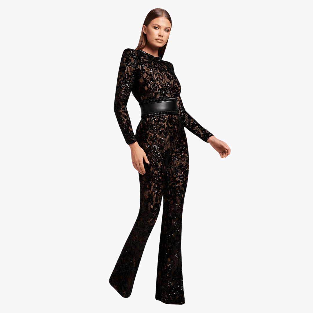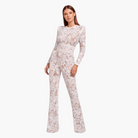 このロングコンビネーションは洗練された現代的な印象を体現しています。長袖とフレアパンツ、そして生地がシルエットを引き立て、微妙な女性らしさを添えます。日常のコーディネートや夜のお出かけにぴったりです。