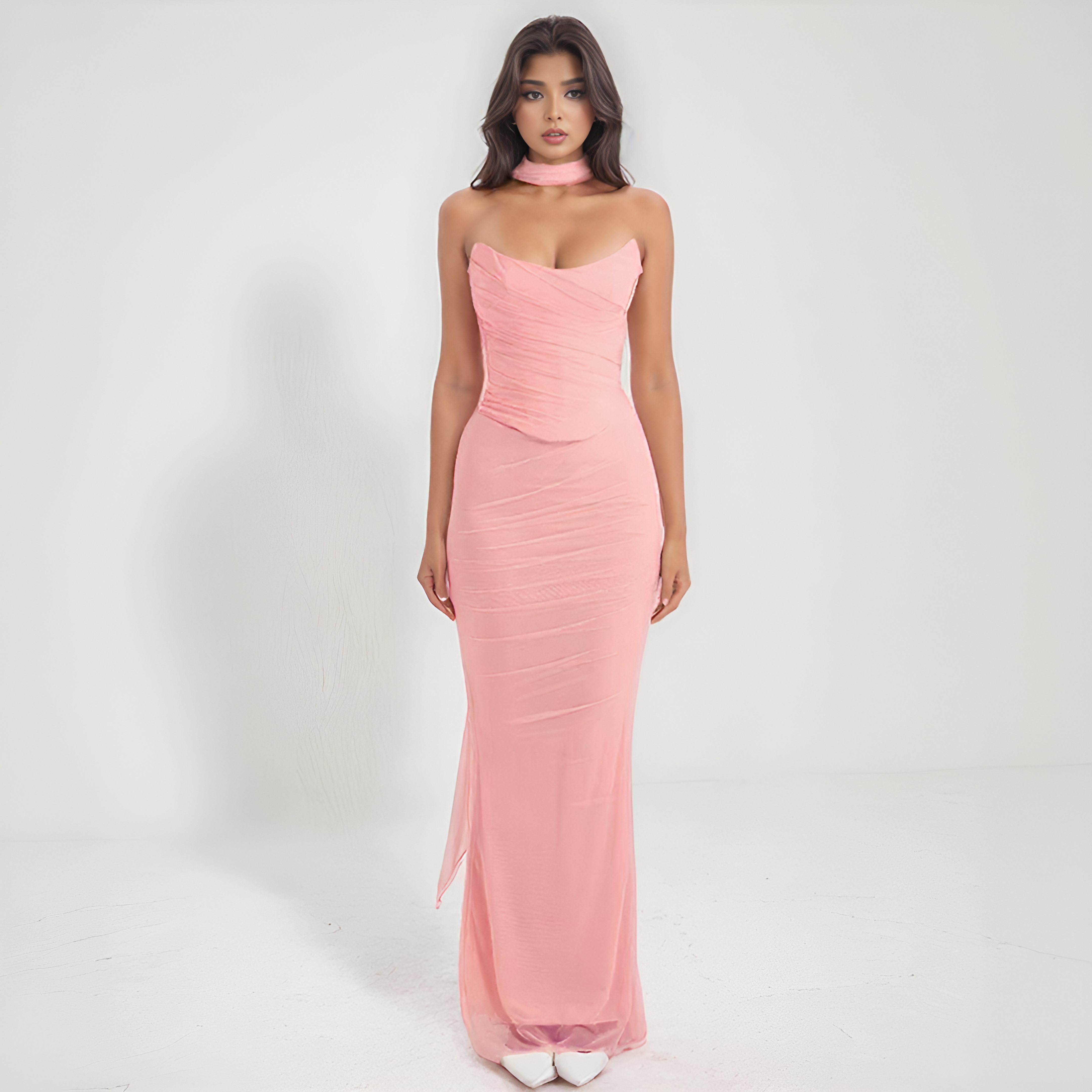 Perry | Długa Sukienka Dwu Częściowa – Elegancja Bez Ramiączek I Koordynujący Szal