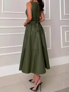 Această rochie fără mâneci oferă o croială trapez care flatează. Țesătura sa ușoară asigură un confort optim. Perfectă pentru zilele însorite.