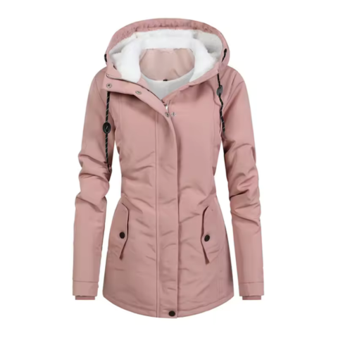 Xavia | Lång Mysig Jacka För Kvinna — Huva Och Kontrastfoder